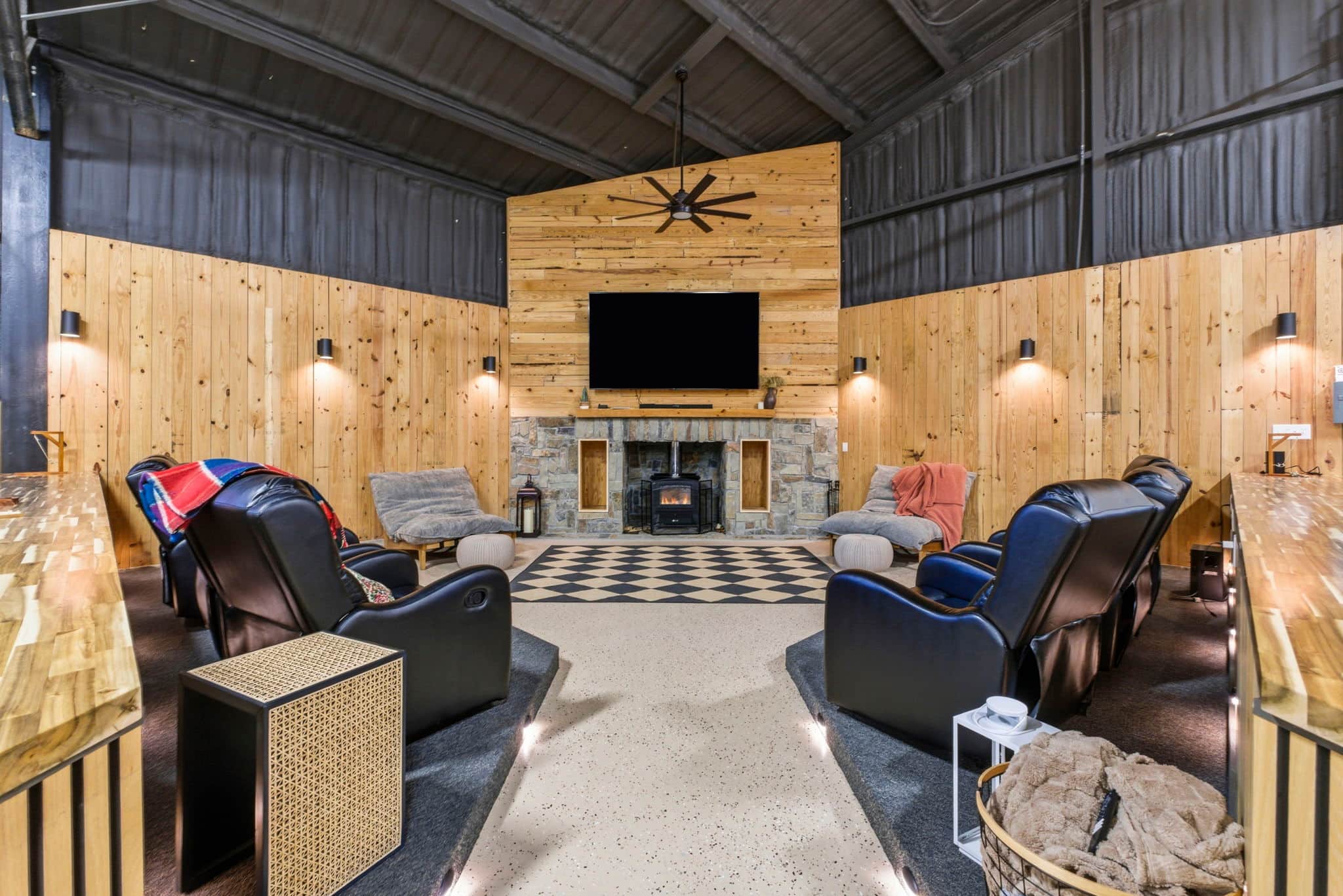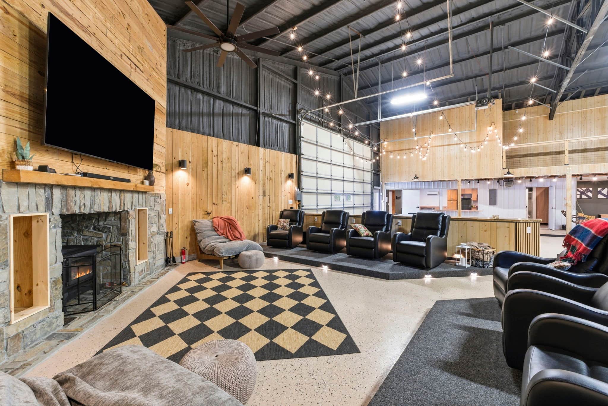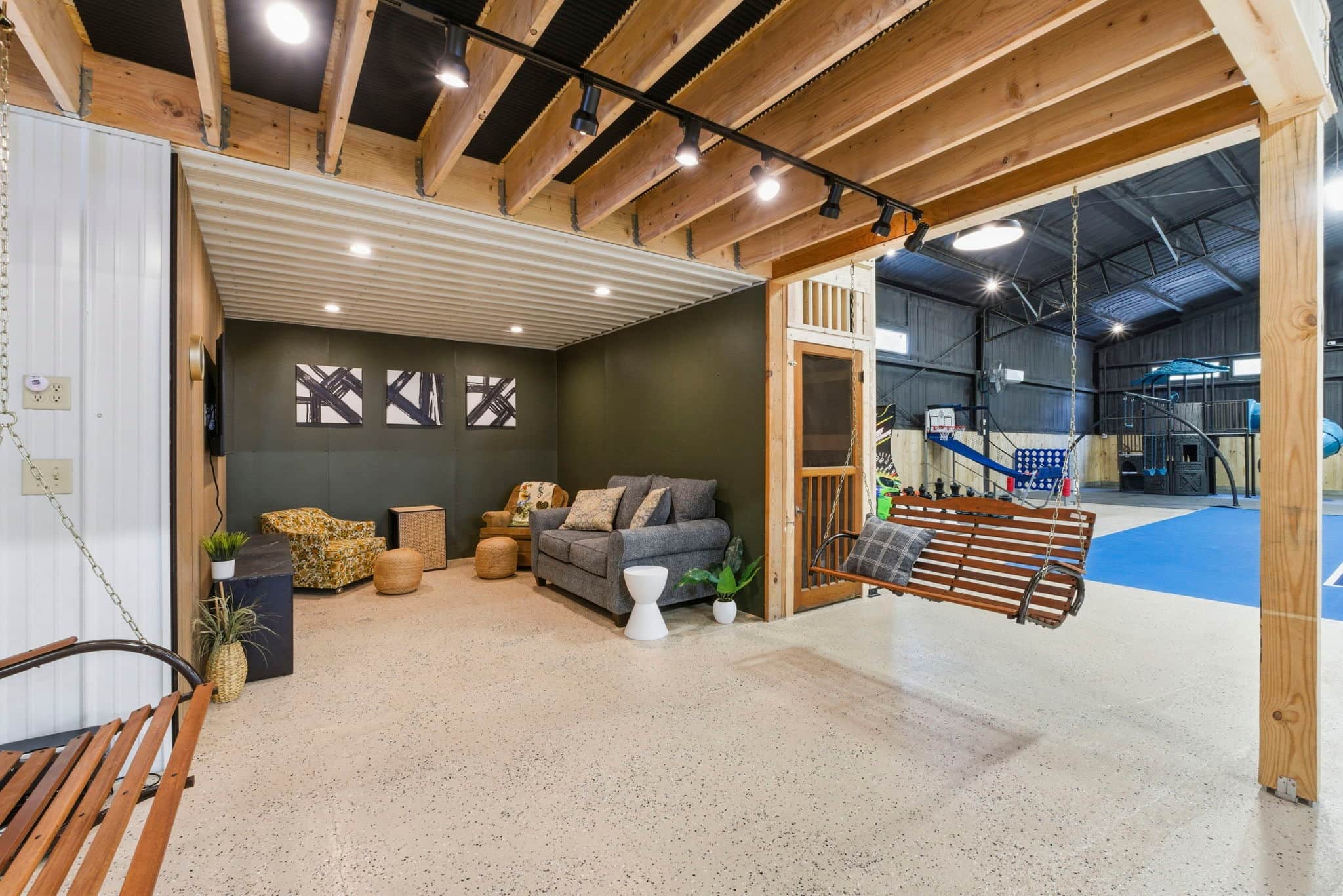 - Multiple seating areas and porch swings and theatre seating